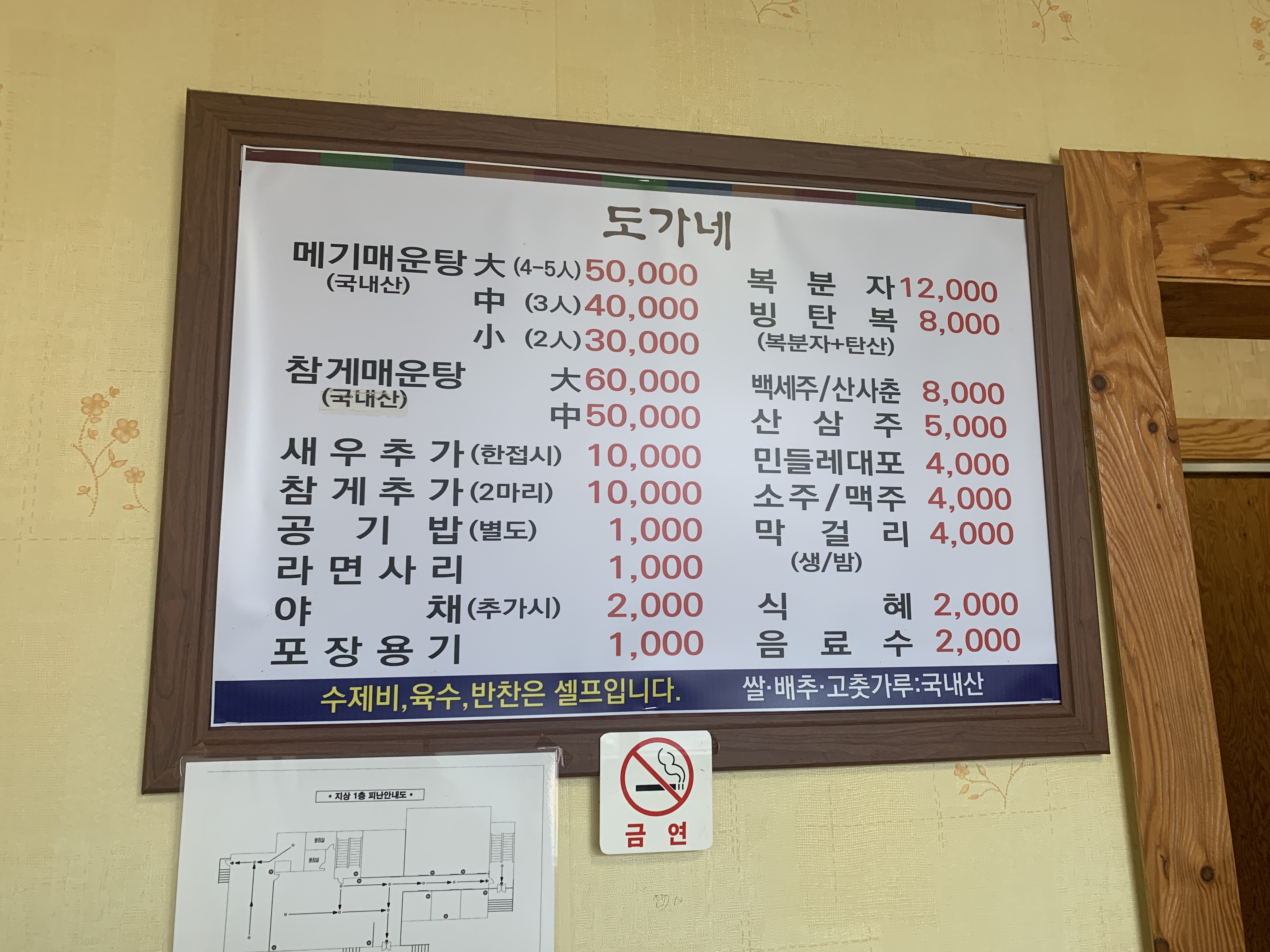 도가네 메뉴판입니다.