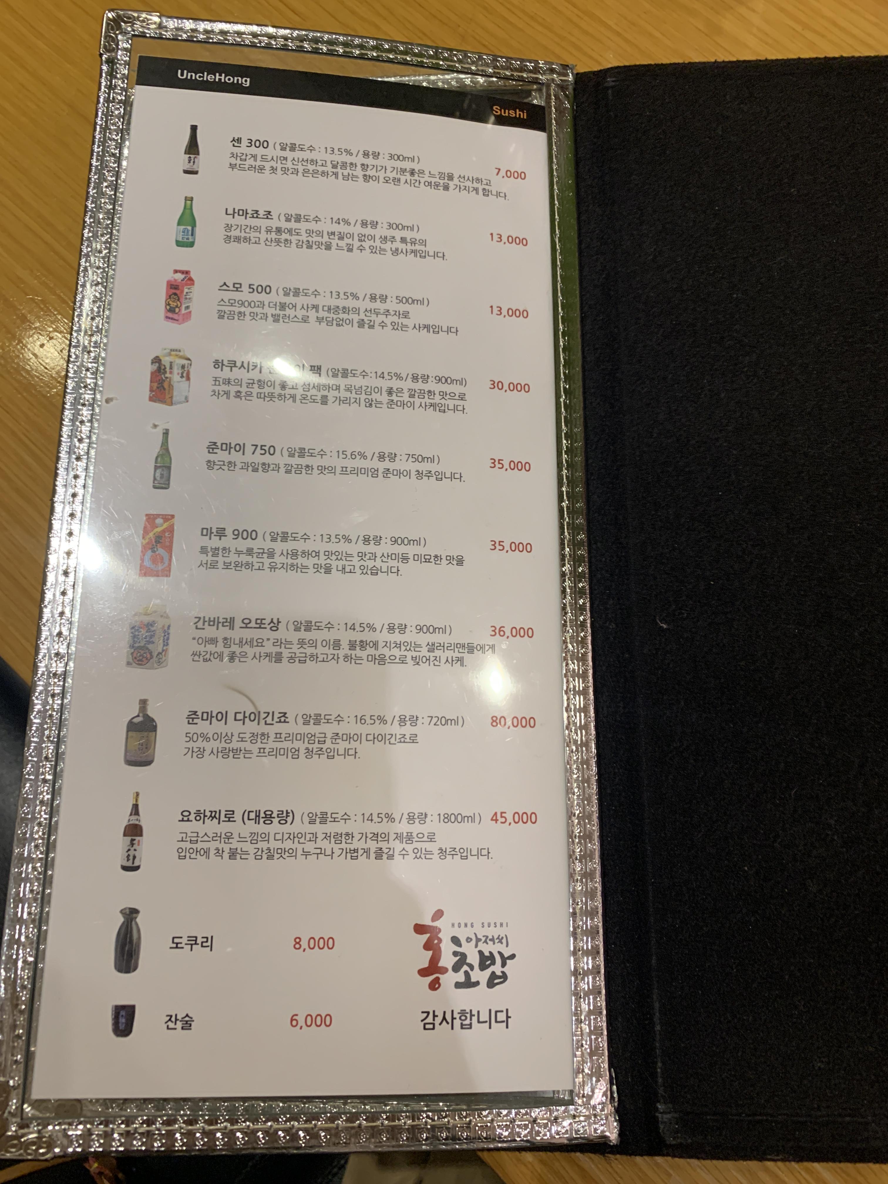 홍아저씨 초밥에 준비되어있는 사케는 꽤 많다.
